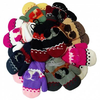 Варежки двойные с рисунком идеально подойдут как для девочек, так и для мальчиков. В упаковке 12 пар одного размера, разного цвета. Расцветки и рисунки в каждой партии могут отличаться.